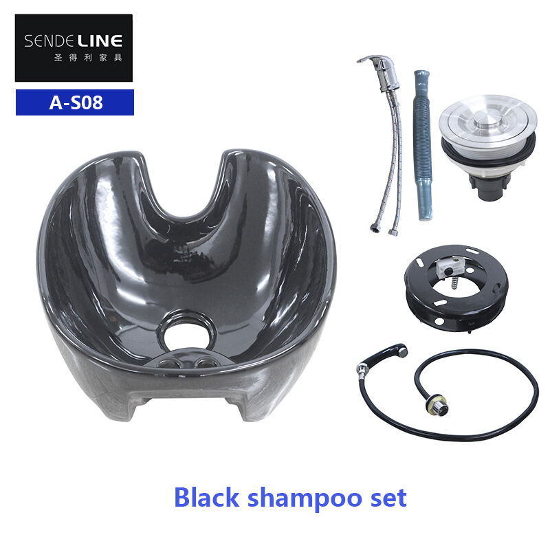 Эта раковина для мытья волос изготовлена из керамики. Она очень высокого класса. Высота парикмахерского кресла регулируется гидравлическим масляным насосом. При нормальных обстоятельствах парикмахер может произвольно регулировать высоту парикмахерского кресла, нажимая на педаль, а спинка также может регулироваться.